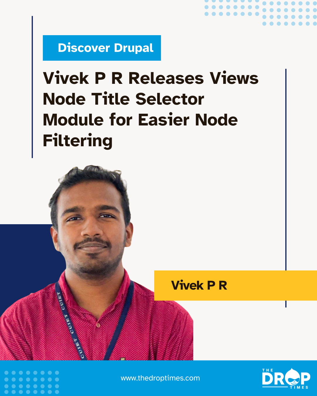Vivek PR telah memperkenalkan modul pemilih judul Node Node, menambahkan daftar pilih, AutoComplete, dan opsi kotak centang untuk filter judul simpul dalam tampilan. Kontribusi drupal.org pertamanya bertujuan untuk merampingkan dasbor pencarian dan admin.